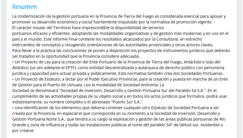Como se puede leer en el RESUMEN del propio documento, no fue un rapto de inspiración reciente del gobernador; sino una planificación técnica que se desprende del texto que constituye el propio informe de CFI. Lo que pone en evidencia que al menos en 2022, FORJA y el MOPOF, ya proyectaban privatizar el puerto. Los datos: