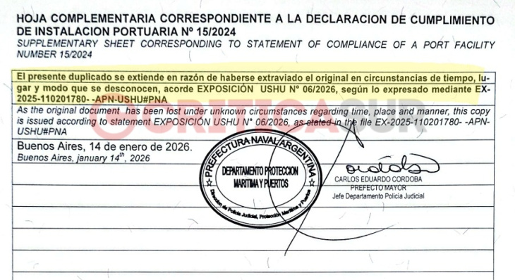 Murcia sostiene que la intervención nacional es un "relato" porque el puerto posee una "Declaración de Cumplimiento de Instalación Portuaria" vigente hasta 2029. Sin embargo, lo que el funcionario omite —y Agenda Malvinas revela tras consultar a expertos— es que ese documento no dice una sola palabra sobre la firmeza de los pilotes, el estado del muelle o el colapso de la playa de contenedores.